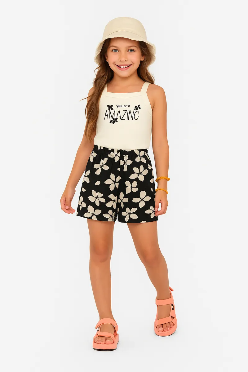 Apresentamos o Conjunto Boca Grande Feminino Infantil tamanho 12, perfeito para garantir conforto e estilo em qualquer ocasião. Este conjunto é feito com tecido macio e leve, ideal para a pele sensível das crianças. Com modelagem pensada para proporcionar liberdade de movimentos, o conjunto é perfeito para o dia a dia. A blusa regata possui estampa divertida e moderna, enquanto o shorts com estampa floral agrega charme e frescor ao visual infantil.